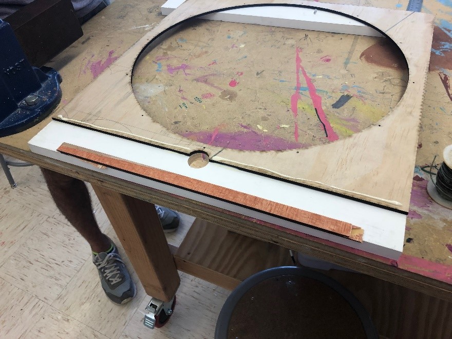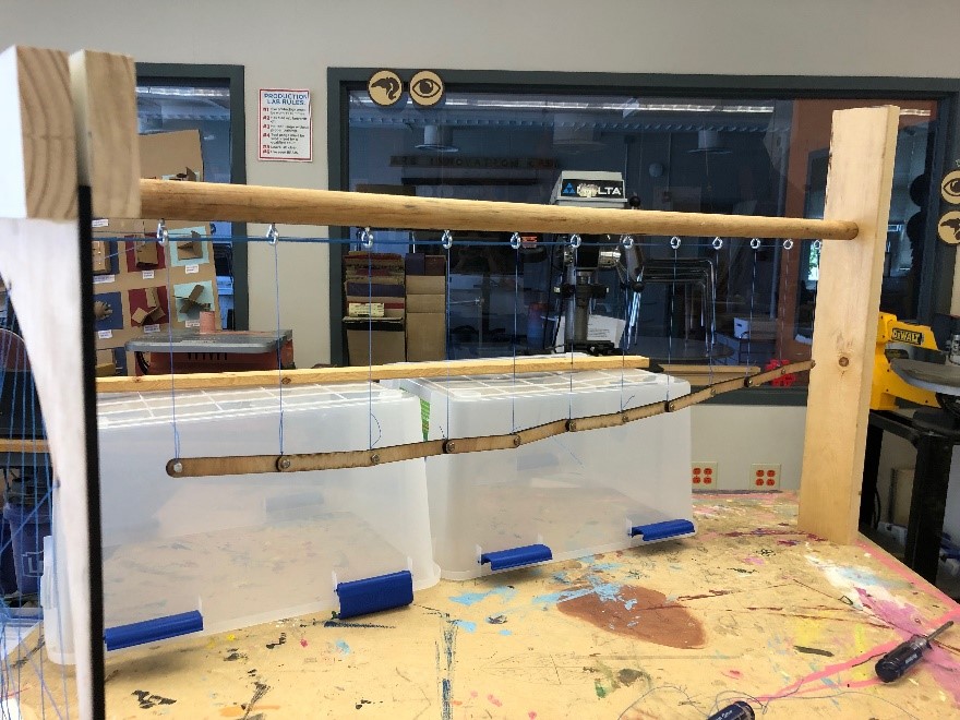 Juliet and I made a simple, working prototype for our presentation that was disassembled afterwards. Later that summer, I continued the project and built an improved sine machine with the help of my mentor, Oren Connell, and his MakerSpace at Ann Richards.