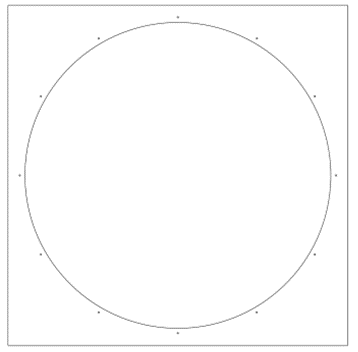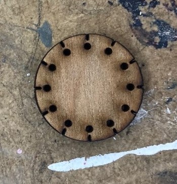 Using Adobe Illustrator, I made a design for the front face of the sine machine (available here. We laser cut the wood sheet so that a large 9" circle and 12 holes (a few millimeters in diameter, equidistant from the circle and separated byu 30 degrees) were cut. |